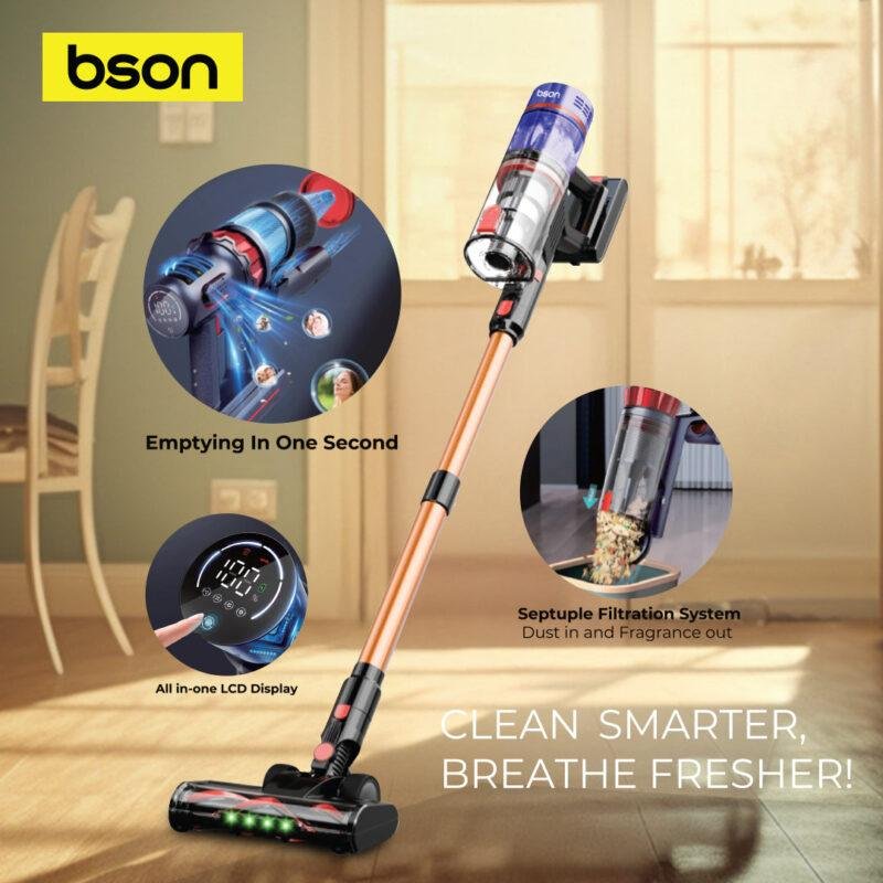 مكنسة كهربائية لاسلكية BSON | قوة شفط مذهلة حتى 35 كيلو باسكال وتصميم خفيف لتنظيف بلا مجهود!