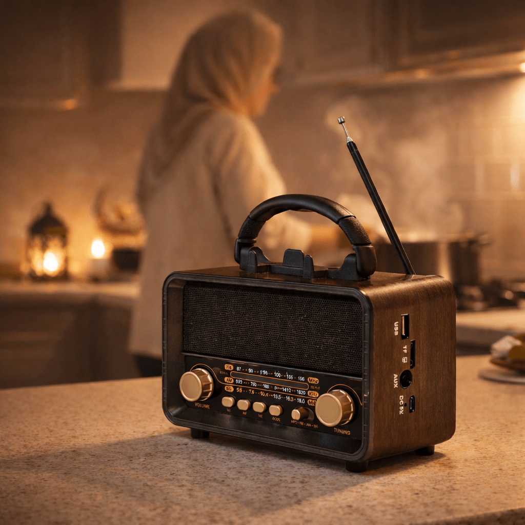 استرجع ذكريات الزمن الجميل مع تصميم كلاسيكي أنيق، واستمتع بصوت واضح في مطبخك كل صباح 🌅
