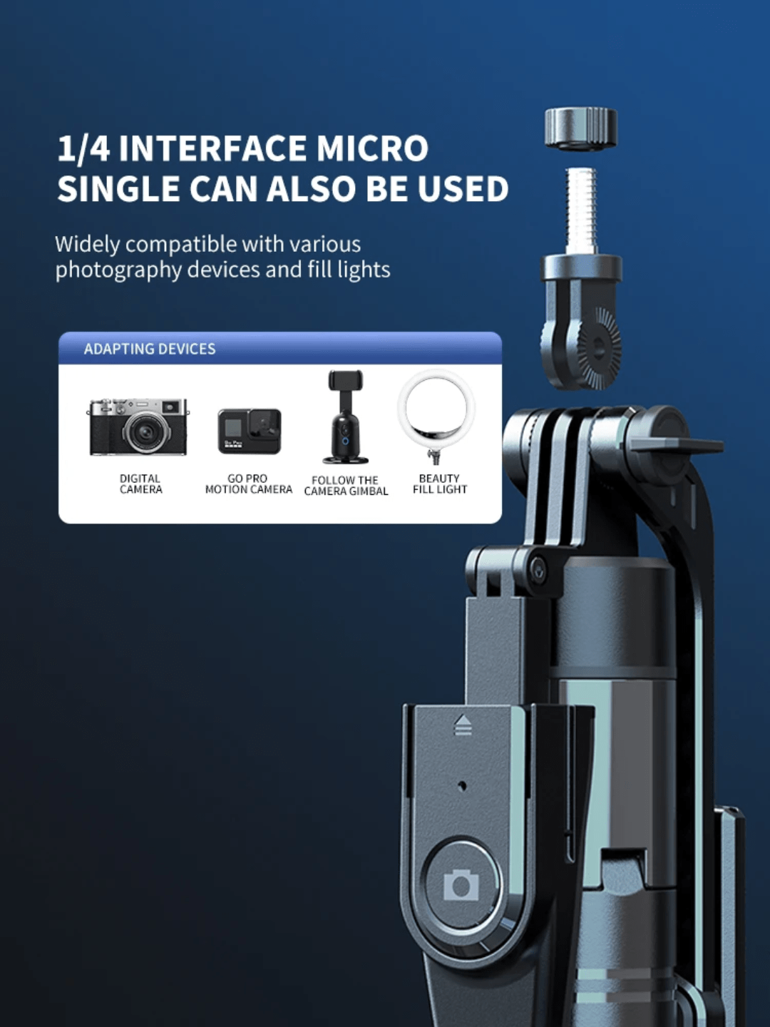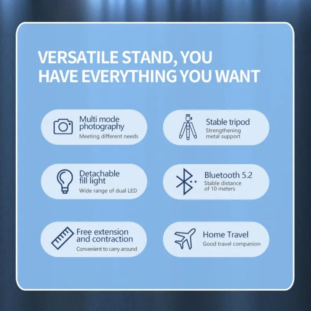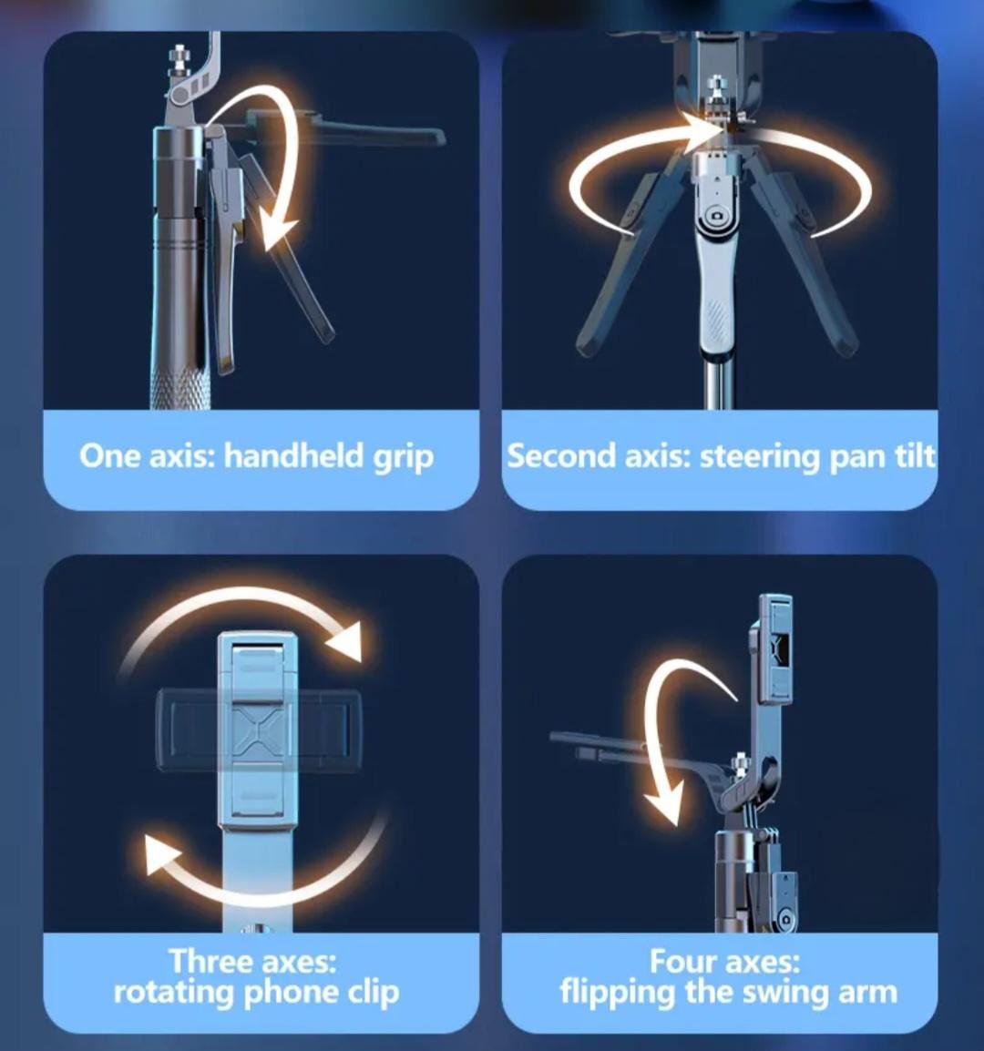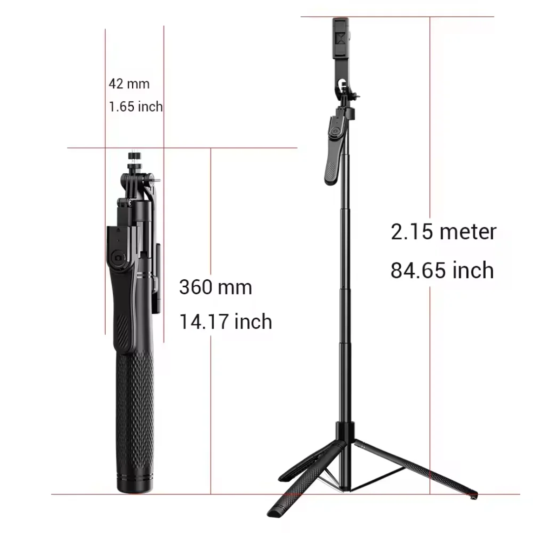 يجمع هذا الحامل بين التحكم اللاسلكي، التصميم القابل للتمديد حتى 2.15 متر، وزاوية دوران 360 درجة لتغطية كل اللقطات بسهولة واحترافية.