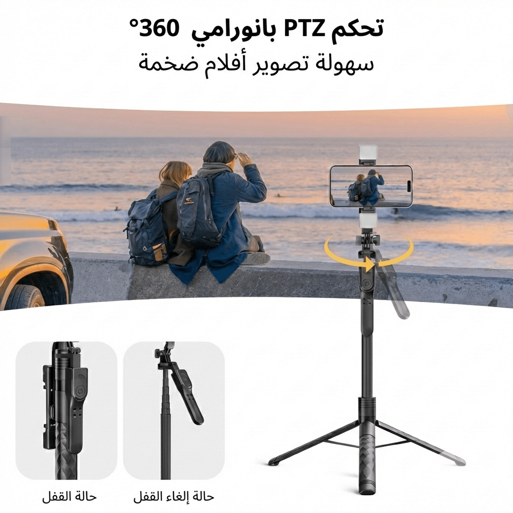 يجمع هذا الحامل بين التحكم اللاسلكي، التصميم القابل للتمديد حتى 1.75 متر، وزاوية دوران 360 درجة لتغطية كل اللقطات بسهولة واحترافية.