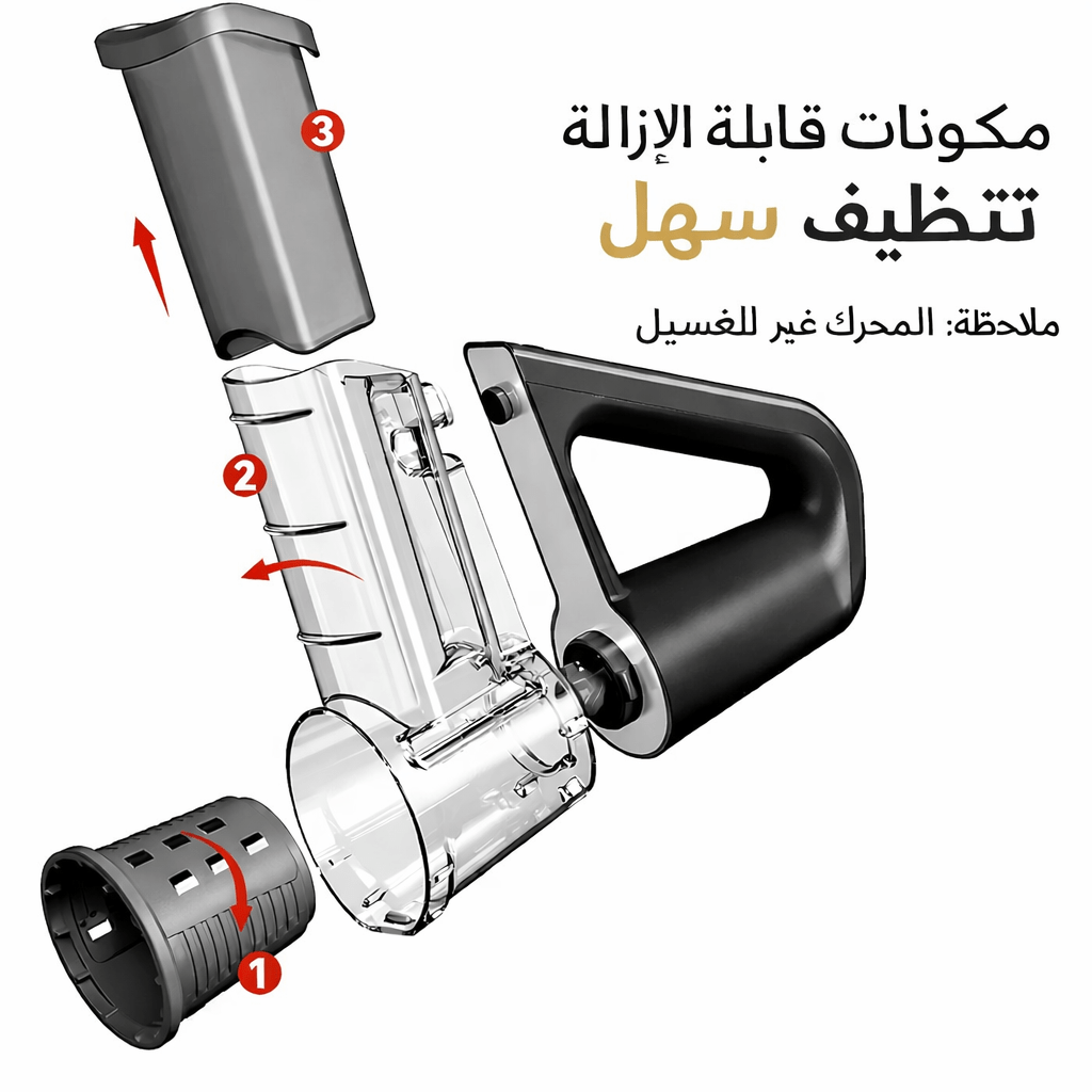 الأجزاء القابلة للفك نعم، لكن وحدة المحرك لا تُغسل.